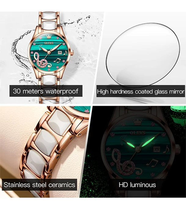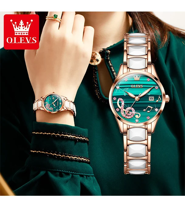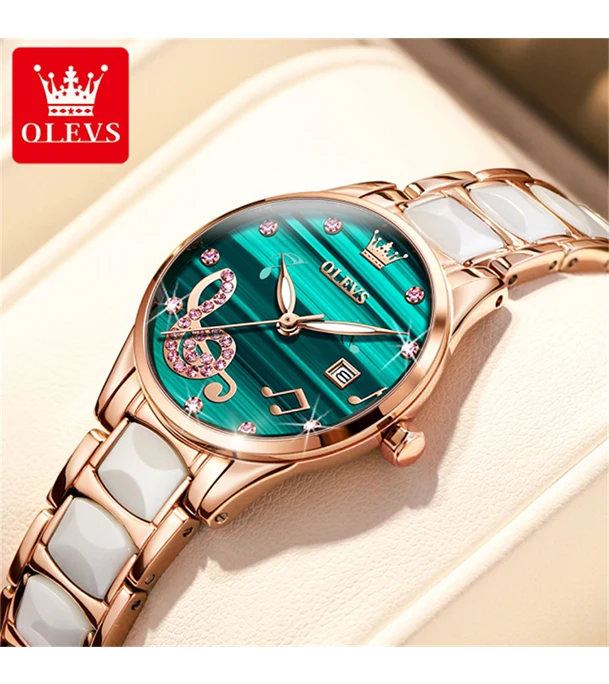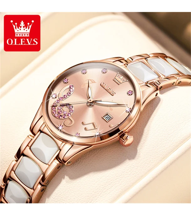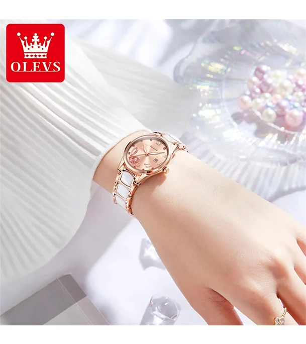 OLEVS 3605 Luxury Rhinestone Ceramics Strap Quartz Watch