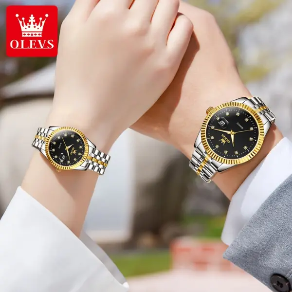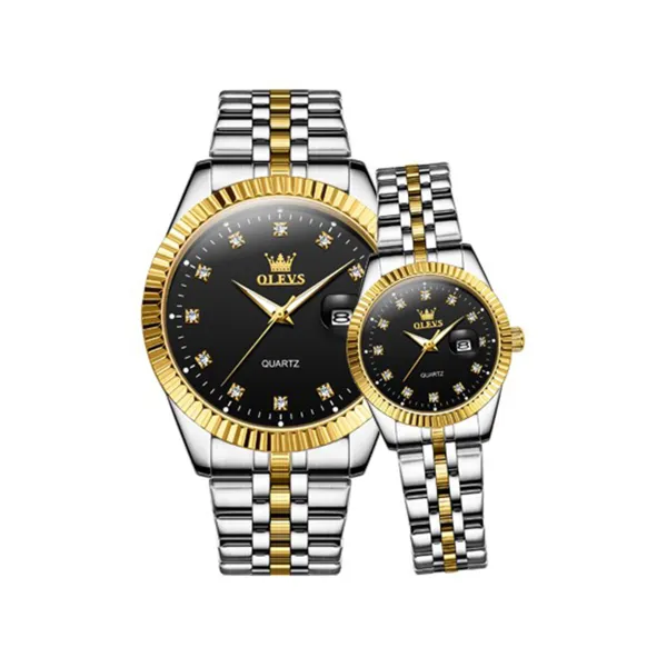 OLEVS 5526 High Quality Luxury Quartz Couple watch- Silver & Black