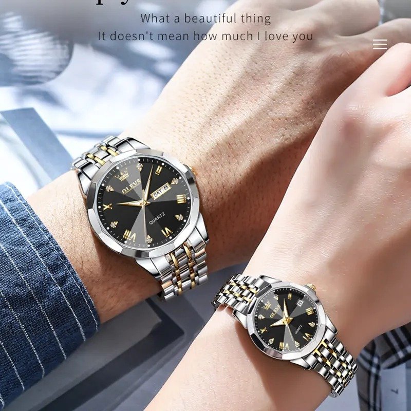 OLEVS 9931 Trendy Korean Style Luminous Calendar with Gift Box Couple Watch