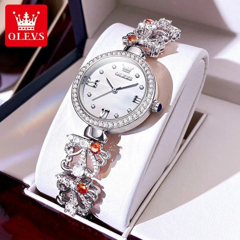 OLEVS 9958 Women_s Watches Luxury Elegant Original Quartz Wristwatch Stainless Steel Inlaid Diamond Watch Ladies Watch